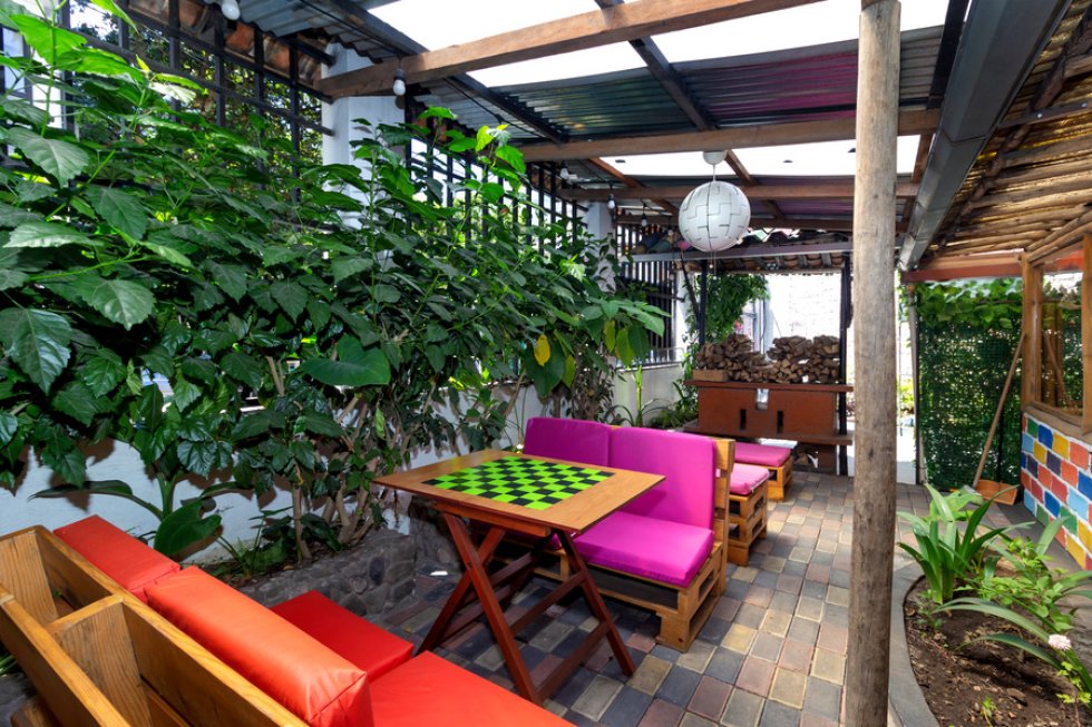 Un ambiente divertido y colorido, con arte en las paredes que lo energizará para comenzar su día de aventuras en Baños de Agua Santa ¡Porque en esta ciudad, no puedes perderte las excursiones, los deportes de aventura y  la adrenalina  con todos los grandes descuentos del albergue!